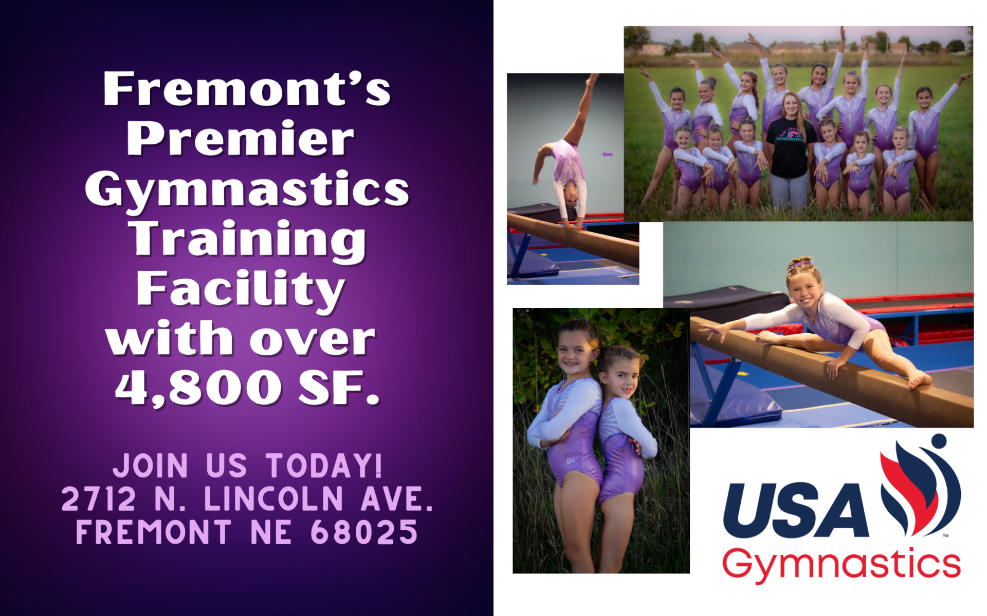We are a gymnastics instruction facility located in Fremont, NE dedicated to providing classes and a competitive Xcel program for girls ages 5 and up. Our experienced coaches are committed to teaching safe and effective techniques so your child will be able to reach their full potential. We strive to provide a positive and fun environment for our athletes and their families.